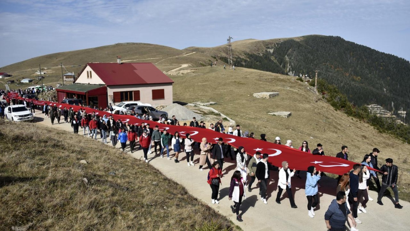 Yürüyüşe katılan doğaseverler, 100 metre uzunluğundaki Türk bayrağını 7,5 kilometre taşıdı.